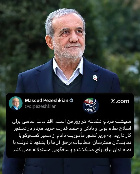 به گزارش خبرحرفه ای مسعود پزشکیان دوشنبه شب هشتم دی ۱۴۰۴ در شبکه اجتماعی ایکس نوشت: معیشت مردم، دغدغه هر روز من است. اقدامات اساسی برای اصلاح نظام پولی و بانکی و حفظ قدرت خرید مردم در دستور کار داریم.