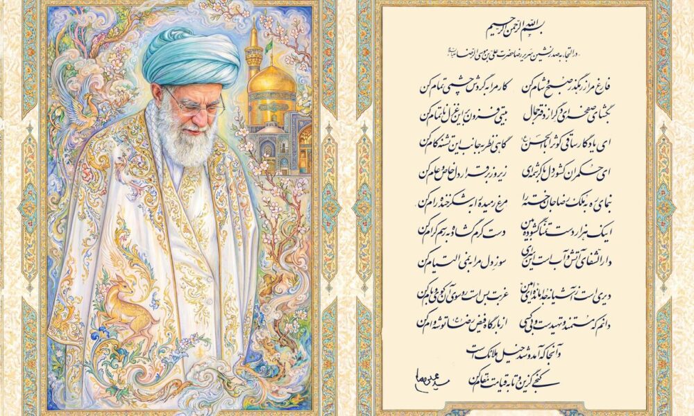 خبر حرفه ای/رسانه KHAMENEI.IR در آستانه سالروز ولادت پر برکت حضرت امام رضا علیه‌السلام، غزلی را از رهبر شهید انقلاب اسلامی حضرت آیت‌الله العظمی سیدعلی خامنه‌ای با عنوان «در التجاء به صدرنشین سریر رضا، حضرت علی بن موسی الرضا علیه‌السلام» برای نخستین‌بار منتشر کرد.